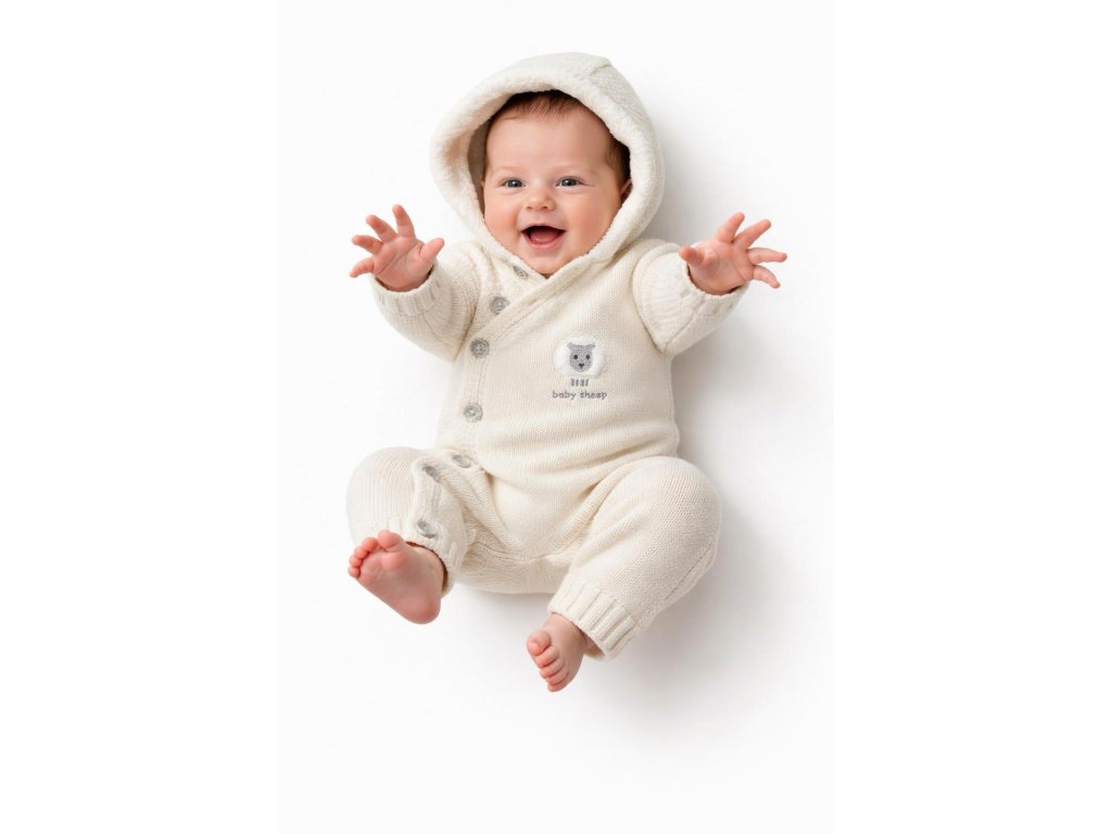 Roztomilá a hřejivá dětská pletená kombinéza s kapucí – ideální na zimní období! 🐑❄️