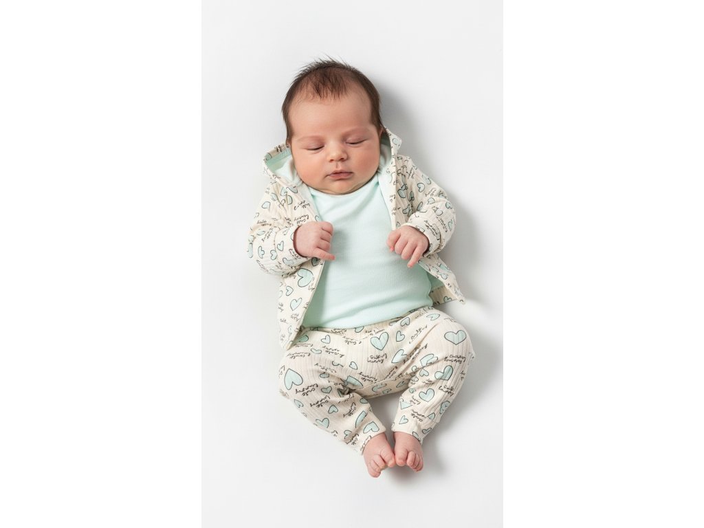 Souprava body tepláky srdíčka v mátové