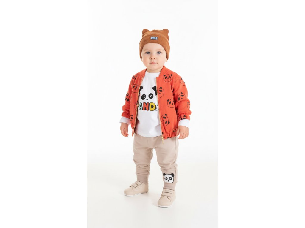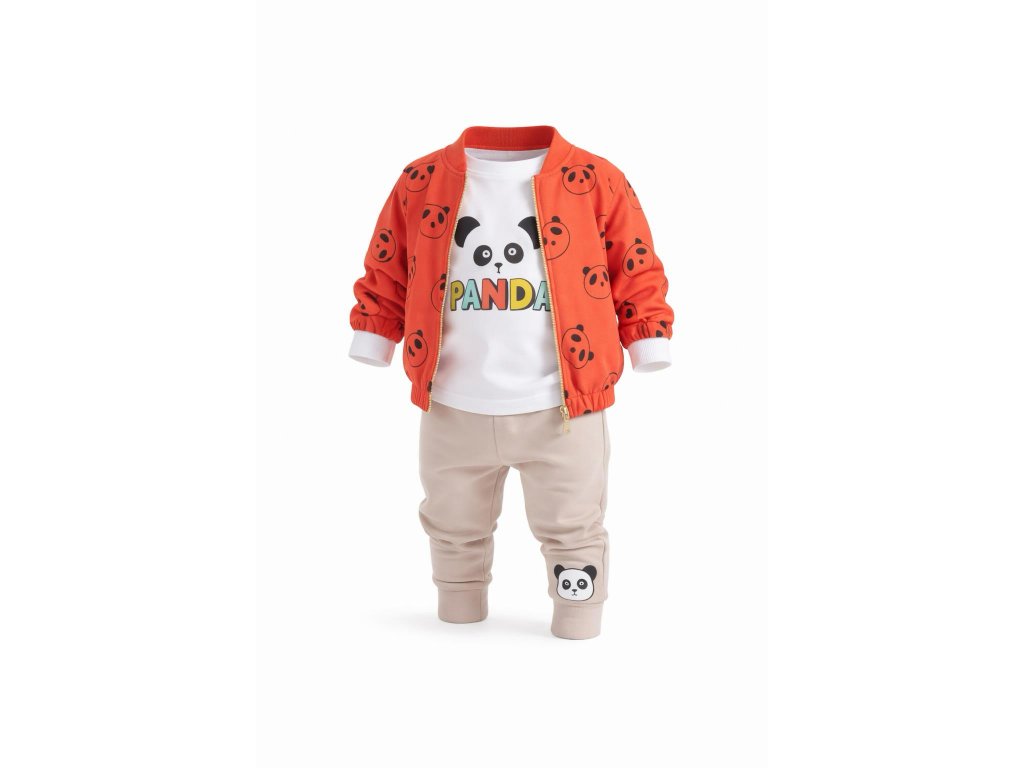 Zamilujte si tuto hravou soupravu s pandou! Tato stylová sada zahrnuje lehkou bundu, tričko s pandou a pohodlné tepláčky s roztomilými detaily. Perfektní volba pro malé průzkumníky, kteří milují zábavné a hravé motivy.