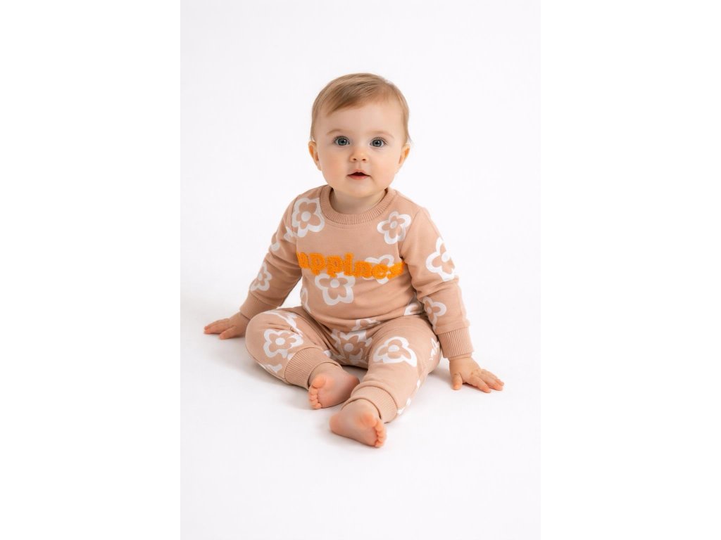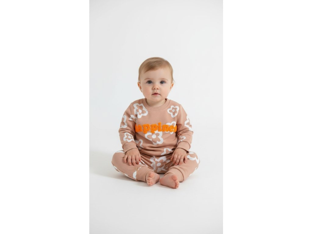 Pohodlí a styl v jednom! Tahle veselá souprava s květinami a výšivkou „happiness“ rozzáří každý den – přesně tak, jak si to vaše malé štěstí zaslouží.